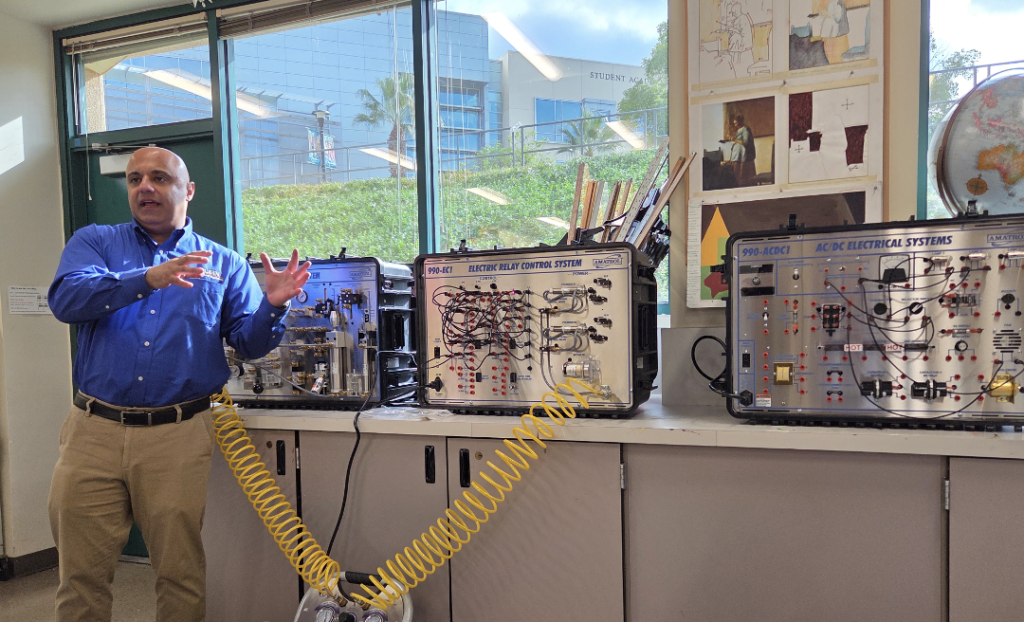 Dr. Rudy Besikof, President of Moreno Valley College gave remarks at the meeting and spoke to the college’s strong commitment to partnerships with industry. The enthusiasm carried through to the lab tour, where attendees stayed to experience live demonstrations of industrial automation systems from Joe Ray and Maroun Nehme of Klein Education Systems, exploring how they are used in student curriculum. Drawings for prizes were held during the tour to thank participants who remained for the full experience.